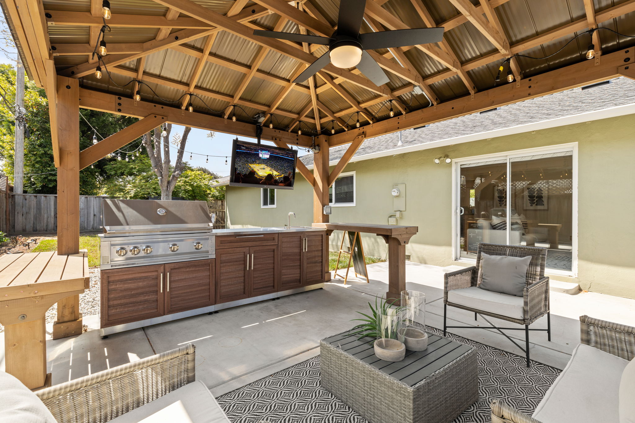 Welcome to a harmonious blend of LOCATION and SETTING! This single level rancher is located on a quaint, tree-lined street in the sought after neighborhood of Willowmont, yet is just minutes from all the amenities you want and need for today’s active lifestyle. The charming front yard welcomes you into this lovely home with 4 bedrooms and 2 bathrooms offering a functional and flexible floorplan that can adapt to changing needs. The living spaces all conveniently flow with each other so you can spend quality time together. The interior of the home has a freshly painting interior, updated light fixtures, hardwood floors, dual pane windows, HVAC and more. The attached garage with direct interior access has lots of storage, epoxy floors, car charger & the W/D (included). Spring is here and you will love the outdoor spaces! If you love gardening, you can take an already cute front yard and personalize it to create the garden of your dreams with trees, shrubs, flowers or succulents! Step out into the backyard and it is all about gathering, playing and relaxing. First you will see the gazebo and outdoor kitchen. Then you’ll notice there’s a sink, a ceiling fan, string lights and tv mount! Beyond that is a grassy area and shed. Next, you’ll be dreaming of what you’ll be cooking on the grill, who you’ll be having over and how fun it will be to watch “the games” and hangout with family and friends. Summer will bring BBQs, games, a splash pool and more. A shed and fenced side yard allows you to store tools, equipment and toys. The neighborhood offers suburban tranquility and an opportunity to be part of a wonderful community. San Jose Unified School District with 12 years of schools nearby – Reed Elementary, John Muir Middle and Pioneer High Schools. Enjoy the convenience of nearby access to expressways, highways, shopping, dining and services. Live, Play and Work in a city that has so much to offer! Great value with lots of future upside potential to personalize and expand. This spacious lot can support an expansion or ADU – Buyers to conduct their own due diligence with the City of San Jose.
